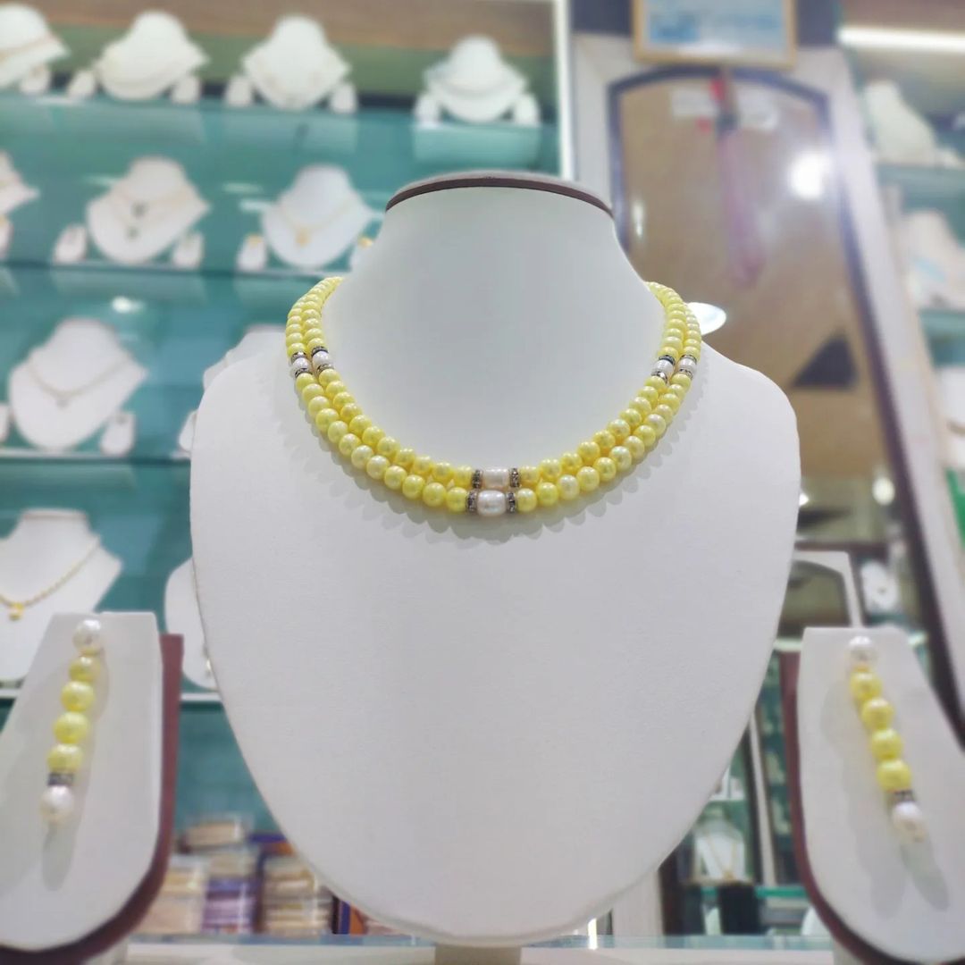 Elegant Double Line Chakri Pearl Necklace Set
